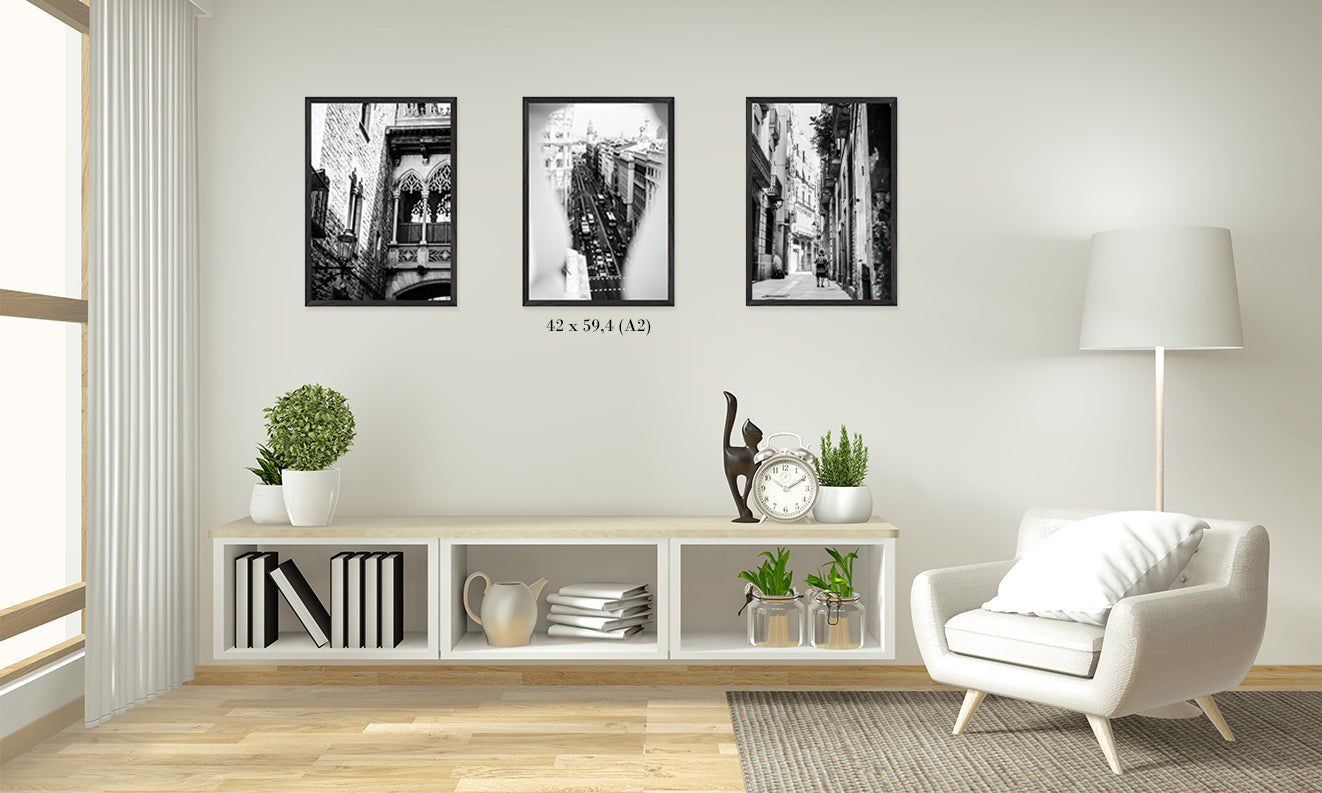 La disse vakre bildene fra Barcelona pryde veggen din. Alle bildene er i a2 format (42x59,4 cm) som gjør de visuelt slående, spesielt når de står sammen som en serie.