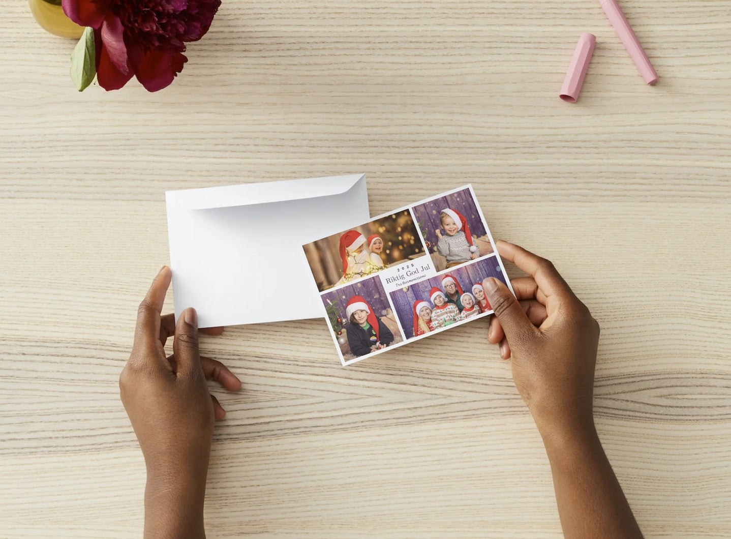 Lag en koselig julehilsen med noen av årets blinkskudd, med en liten julehilsen i midten.