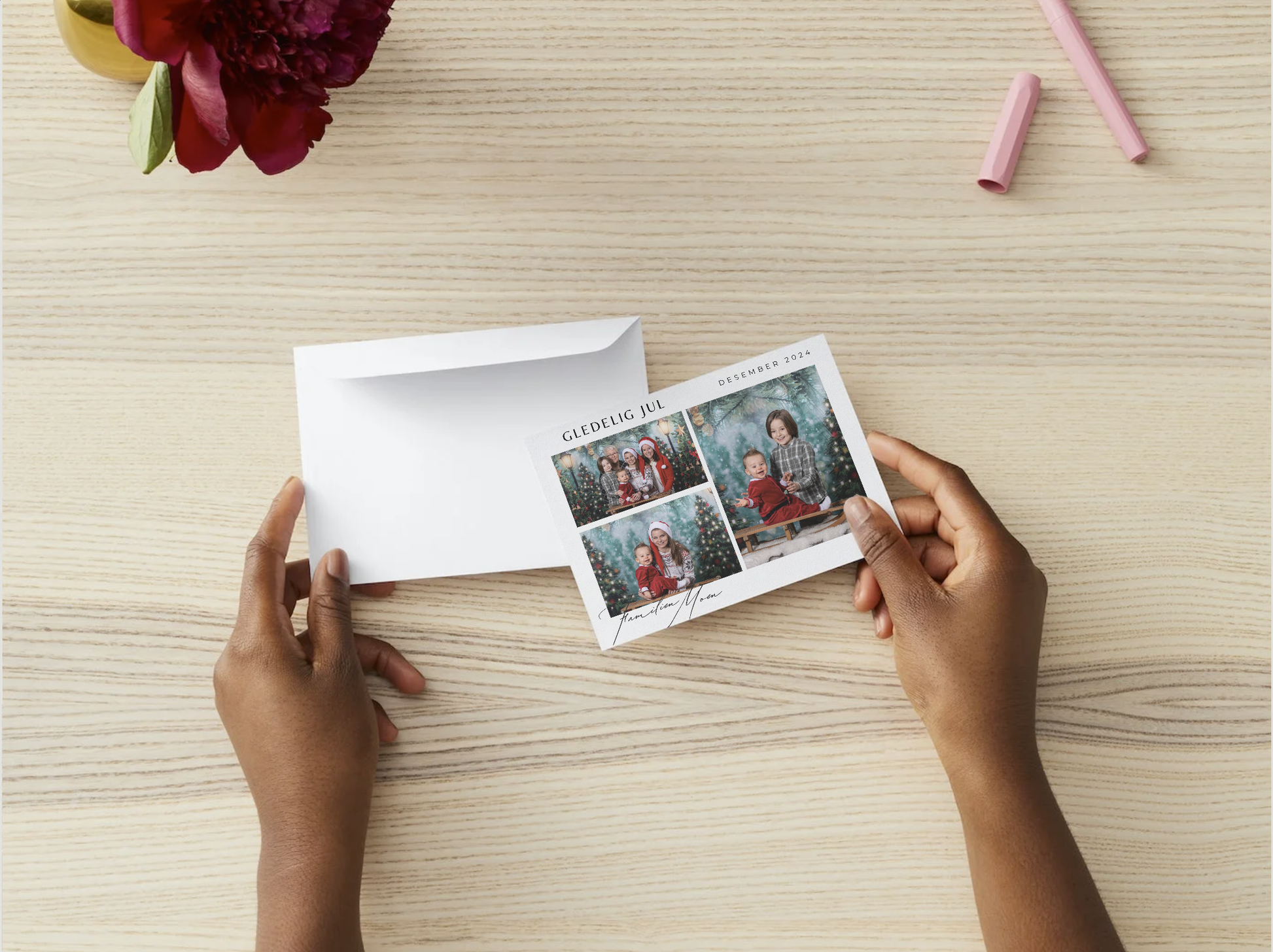Finn frem noen fine bilder fra året som har vært og sett de sammen til en fin julehilsen du kan dele med alle dine.