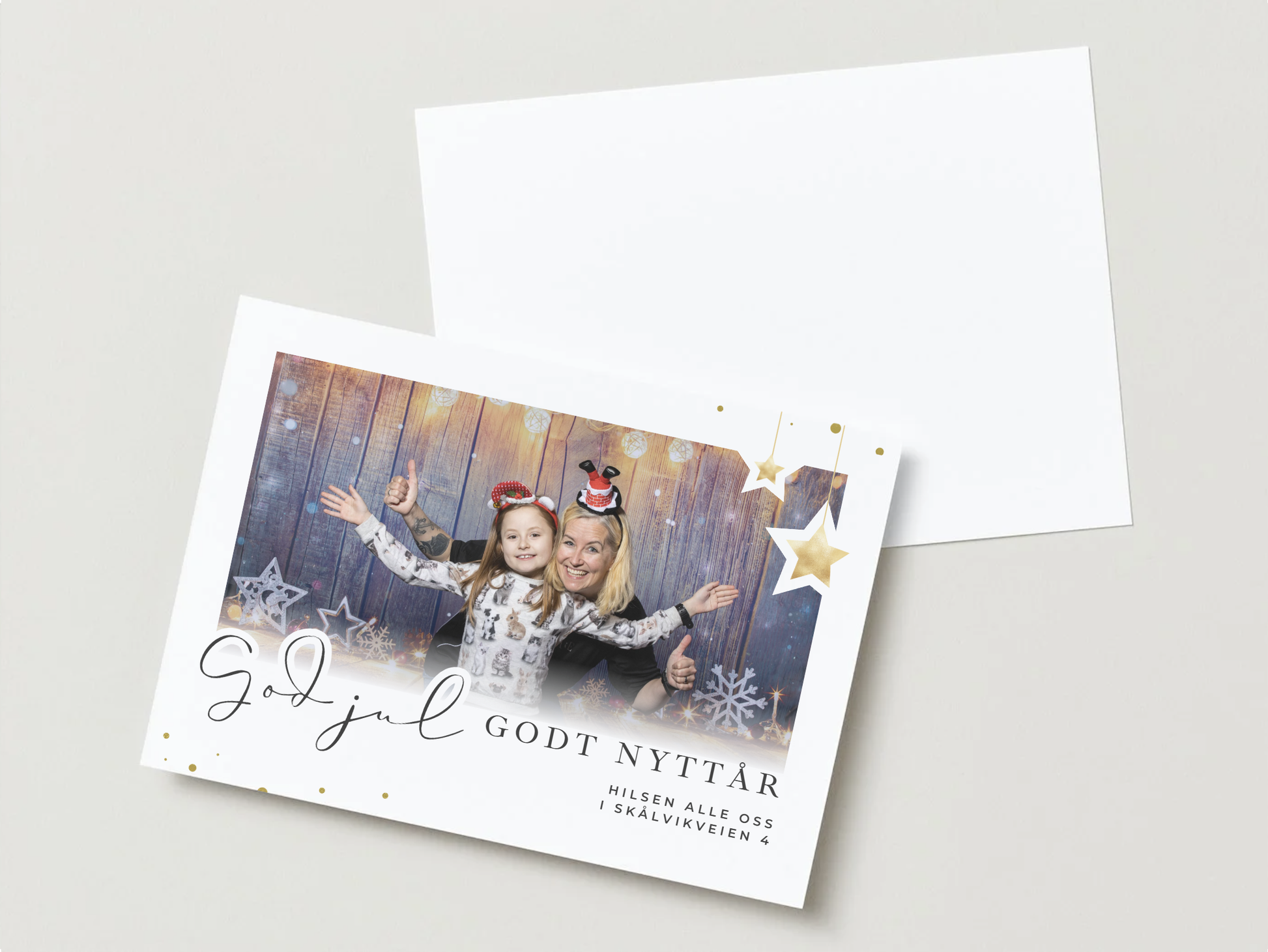 En enkel ramme med stjerner kan gjøre så mye, og sett inn ditt favorittbilde her og du har årets julekort i boks.
